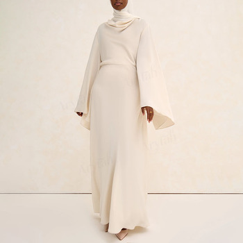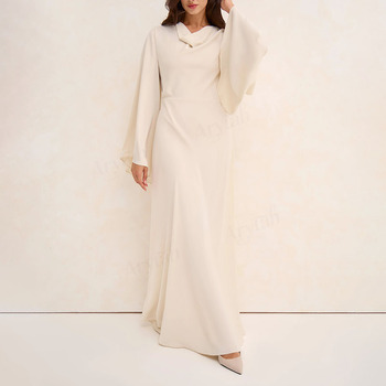 Arytah personalizado nuevo diseño de cuello vuelto mujeres musulmán satén Maxi vestido Color sólido liso ropa islámica modesto vestidos de mujer
