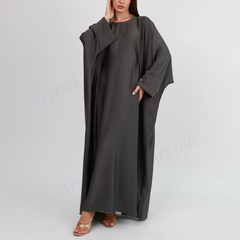 アバヤ女性用バットウィングデザインアバヤフルレングス控えめなOネックイスラム女性用