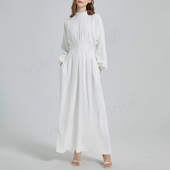 カスタム新スタイル女性用ドレス控えめ無地白イスラムエレガントなドローストリング女性用ドレス